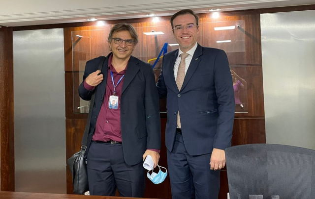 O diretor de Cidadania e Direitos Humanos da Associação Nacional dos Magistrados da Justiça do Trabalho (Anamatra), André Dorster, e o jornalista e professor universitário Lunde Braghini reuniram-se, nesta quarta (17/8), na sede da Anamatra, em Brasília.