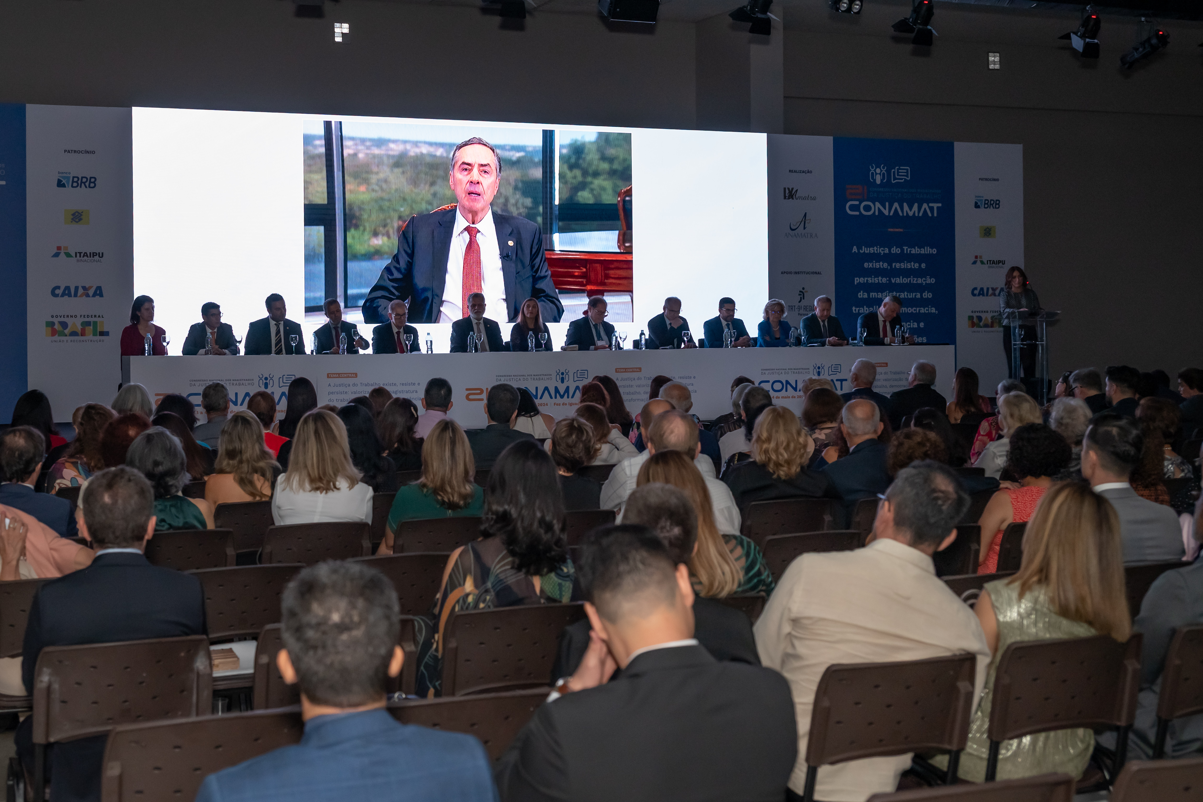 Compuseram a mesa de abertura do 21º Conamat a presidente do Anamatra, juíza Luciana Conforti; o presidente do Tribunal Superior do Trabalho (TST) e do Conselho Superior da Justiça do Trabalho (CSJT), ministro Lelio Bentes; o corregedor geral de Justiça, ministro Luís Felipe Salomão, o presidente do TRT da 9ª Região, desembargador Célio Horst Waldraff, o subprocurador-geral do Trabalho, Luercy Lino Lopes; o presidente da Amatra 9/PR, juiz Daniel Roberto de Oliveira; o procurador geral do Município de Foz do Iguaçu, Osli de Souza Machado; o presidente da Associação Nacional dos Procuradores e Procuradoras do Trabalho (ANPT), José Antonio Vieira; o presidente da Associação dos Magistrados do Paraná (AMAPAR) ), juiz Marcel Ferreira dos Santos, representando a Associação dos Magistrados Brasileiros (AMB); juiz Marcel Ferreira dos Santos; o diretor jurídico da Itaipu Binacional, Luiz Fernando Ferreira Delazari; o gerente nacional de Estratégia Jurídica da Caixa Econômica Federal (GEJUT), Toni Roberto Mendonça; a diretora jurídica do Banco do Brasil, Lucinéia Possar; a conselheira Ordem dos Advogados do Brasil - Seção do Paraná, Adenícia de Souza Lima; e o conselheiro da Associação da Advocacia do Trabalho do Paraná (AATPR), André Gonçalves Zipperer, representando a Associação Brasileira de Advogados Trabalhistas (ABRAT).