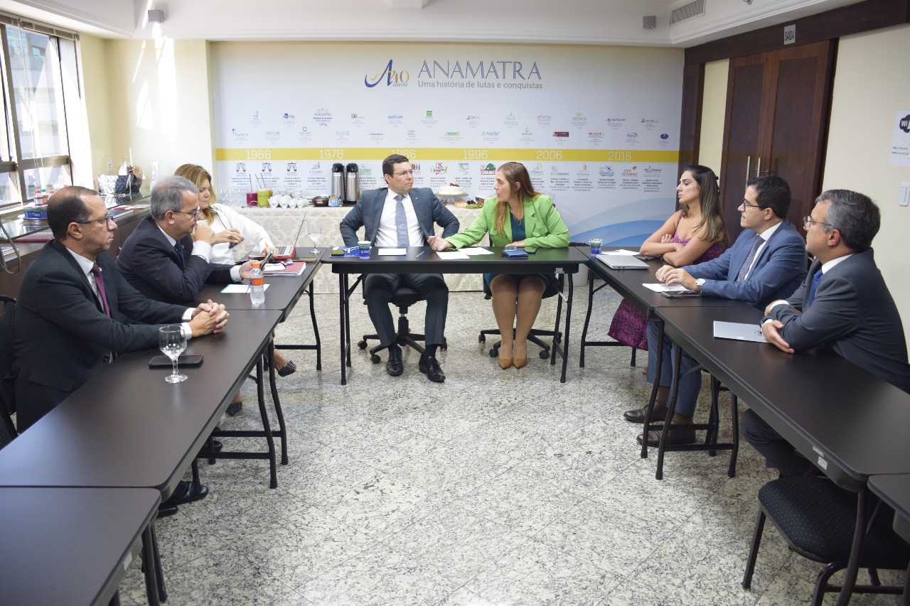 A presidente da Associação Nacional dos Magistrados da Justiça do Trabalho (Anamatra), Luciana Conforti, o vice-presidente, Valter Pugliesi, e a diretora de Prerrogativas e Assuntos Jurídicos, Dayna Lannes, receberam, nesta quarta (10/7), dirigentes das principais associações da magistratura brasileira e do Ministério Público, para discutir estratégias de atuação em temas de interesse de suas associadas e associados, da ativa e aposentadas(os).