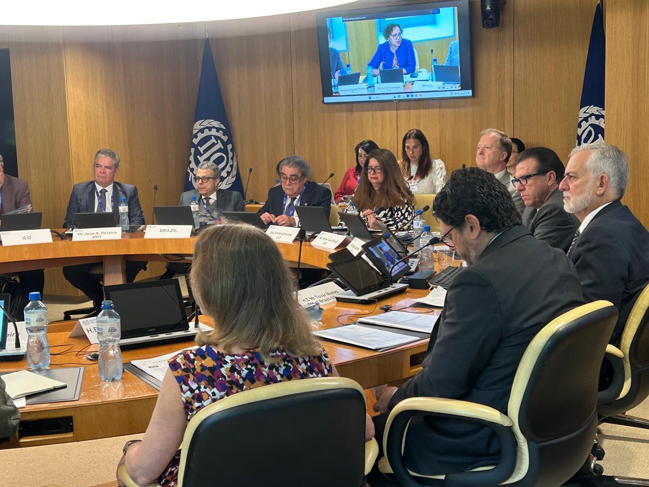 A programação do evento nesta terça (10/6), com a participação do presidente, incluiu a 12ª Reunião Anual OIT-Brasil, com debate das ações do programa de Cooperação Sul-Sul Trilateral entre o Brasil e a OIT. A reunião foi conduzida pelo ministro do Trabalho e Emprego, Luiz Marinho, juntamente com a diretora-geral assistente para Relações Externas e Corporativas da OIT, Laura Thompson, e contou com a participação do presidente do Tribunal Superior do Trabalho (TST), ministro Aloysio Corrêa da Veiga, do procurador-geral do Trabalho, José de Lima Ramos, do embaixador Tovar da Silva Nunes, chefe da Missão Permanente do Brasil junto aos Organismos Internacionais em Genebra, e da embaixadora Maria Luiza Lopes da Silva, diretora-adjunta da Agência Brasileira de Cooperação (ABC).