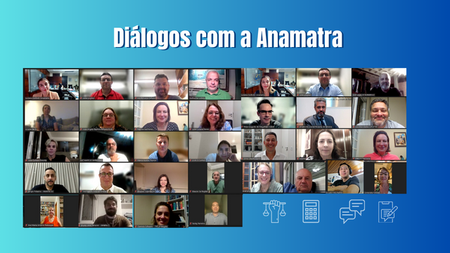 Nesta semana, o projeto "Diálogos com a Anamatra" foi conduzido pela presidente da Anamatra, Luciana Conforti, e pelo vice-presidente, Valter Pugliesi, por meio da plataforma Zoom, com a participação de diversas diretoras e diretores da entidade.