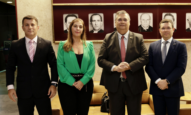 A presidente da Associação Nacional dos Magistrados da Justiça do Trabalho (Anamatra), Luciana Conforti, o vice-presidente, Valter Pugliesi, e o diretor de Assuntos Legislativos, Marco Aurélio Treviso, foram recebidos, nesta quarta (17/4), pelos ministros Flávio Dino e Edson Fachin, do Supremo Tribunal Federal (STF).