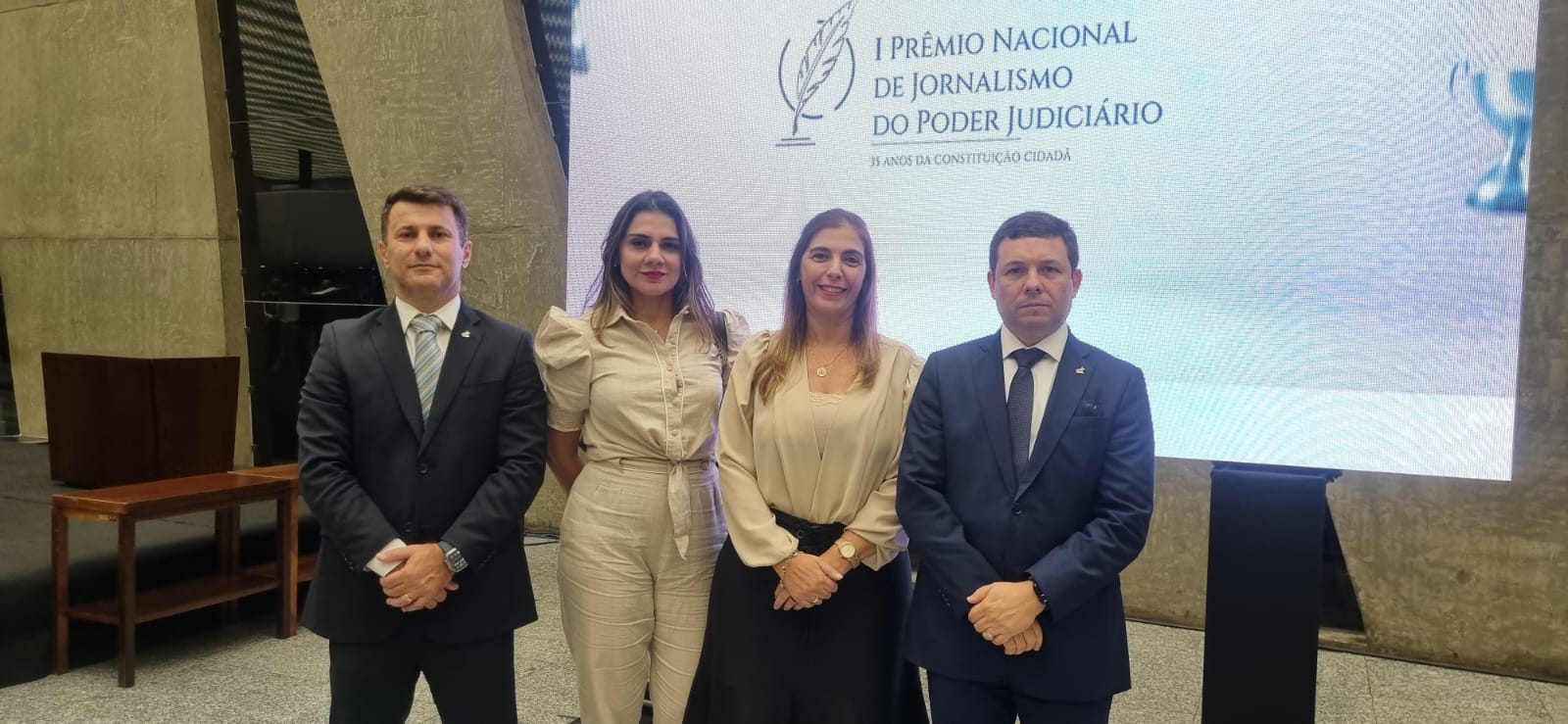 A presidente da Associação Nacional dos Magistrados da Justiça do Trabalho (Anamatra), Luciana Conforti, o vice-presidente, Valter Pugliesi, a diretora de Prerrogativas e Assuntos Jurídicos, Dayna Lannes, e o diretor de Assuntos Legislativos, Marco Treviso, prestigiaram, no dia 24 de abril, a cerimônia de entrega do 1º Prêmio Nacional de Jornalismo do Poder Judiciário, realizada na sede do Superior Tribunal de Justiça (STJ).