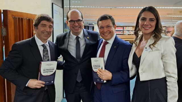 Entre as autoridades presentes esteve o presidente do STF, ministro Luís Roberto Barroso, autor do prefácio do livro que também traz como coordenadores os professores Afonso de Paula Pinheiro Rocha e Guilherme Veiga. ‘Há alguma coisa nova e relevante acontecendo no direito processual brasileiro que é o surgimento dos processos estruturais. Este livro reúne um conjunto relevante de autores que discutem essa novidade que, acho, pode trazer uma contribuição importante’, destacou Barroso.