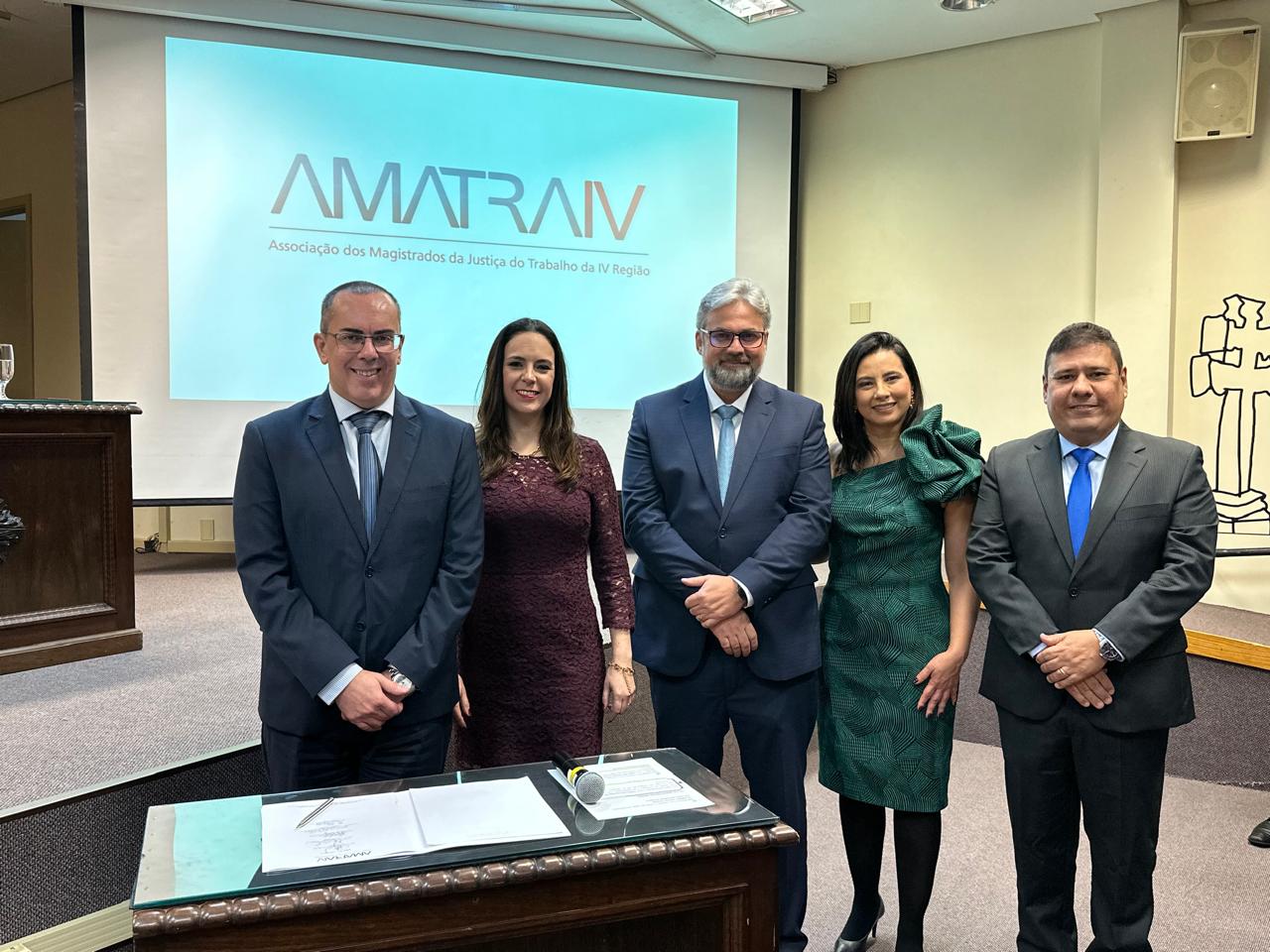 Tomaram posse, nessa sexta (28/6), os novos dirigentes da Associação dos Magistrados da Justiça do Trabalho da 4ª Região (Amatra 4/RS) para o biênio 2024/2026. Os juízes do Trabalho Tiago Mallmann Sulzbach e Eliane Covolo Melgarejo passam a ocupar os cargos, respectivamente, de presidente e vice-presidente da associação gaúcha.