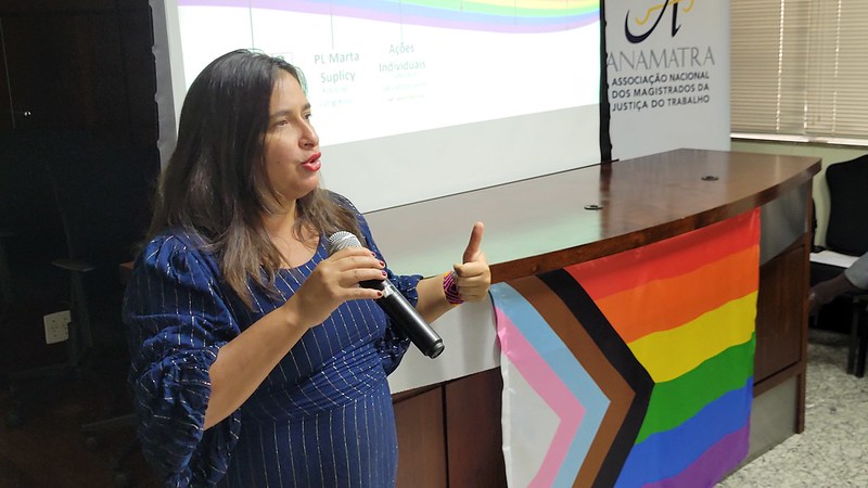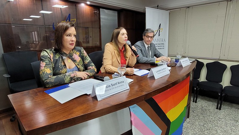 Ao abrir o evento, a presidente da Anamatra, Luciana Conforti, falou da importância do evento não apenas para discutir as violências, discriminações, mas também apontar para os avanços, avanços e perspectivas relativas a essa pauta. ‘A Anamatra assume o compromisso efetivo com as pautas LGBTQIAPN+, não apenas para dar visibilidade interna, mas para que as magistradas e magistrados possam conduzir os processos com uma visão antidiscriminatória, por exemplo, com marcadores sociais e morais’. Entre as iniciativas, citou a presidente, estão os três protocolos com orientações antidiscriminatórias para o julgamento de processos pela Magistratura do Trabalho, lançados pelo Tribunal Superior do Trabalho (TST), nesta segunda (19/8).