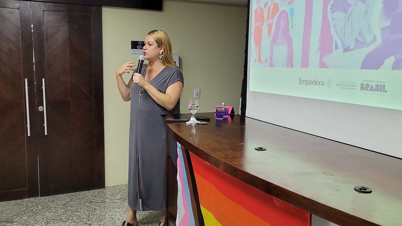 A professora Ivanilda Lyra fez um histórico da evolução de direitos relativos à comunidade LGBTQIAPN+, da discussão sobre o casamento homoafetivo, de julgamentos no Supremo Tribunal Federal (STF) e do desafio da atualidade com a existência de pautas contrárias aos direitos humanos. Para a painelista, existem dois polos opostos no debate LGBT: o pessimista e o otimista. ‘Na verdade, não é nenhum nem outro. Precisamos estar aqui, no meio. Há muito ainda a ser feito para que tenhamos um tratamento igualitário e nossos direitos garantidos.