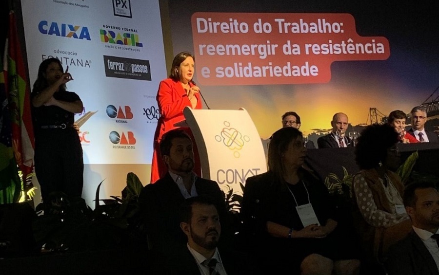 Ao se pronunciar, a diretora Patrícia Sant’Anna destacou a representatividade do Congresso, que ‘reúne os maiores nomes da advocacia brasileira, cuja atuação é essencial para a administração da Justiça e para a defesa da Justiça do Trabalho e de sua competência”.
