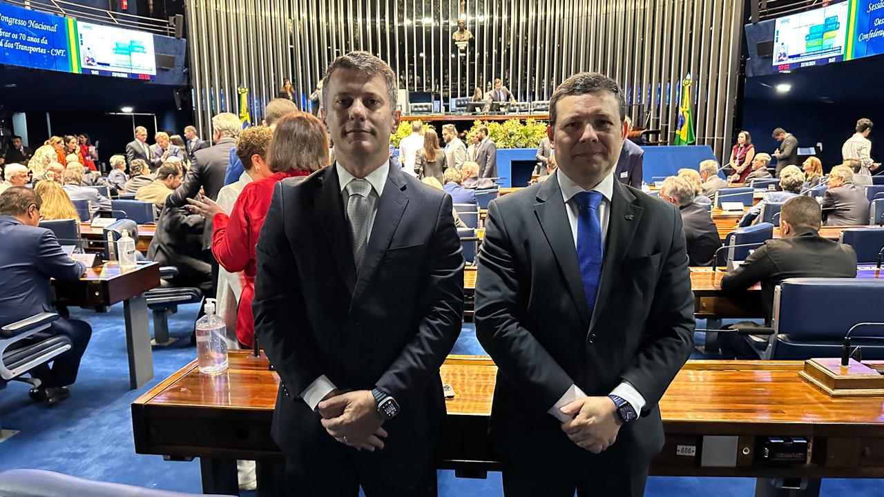 A Associação Nacional dos Magistrados da Justiça do Trabalho (Anamatra), atendendo a convite, prestigiou, nesta quarta (23/10), a Sessão Solene do Congresso Nacional destinada a celebrar os 70 anos da Confederação Nacional dos Transportes (CNT). Estiveram presentes o vice-presidente Valter Pugliesi e o diretor Legislativo, Marco Treviso.