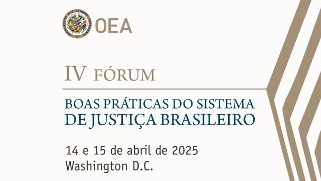 A Organização dos Estados Americanos (OEA), com apoio da Escola Nacional de Formação e Aperfeiçoamento de Magistrados (Enfam) e de outras instituições governamentais, realizará, entre os dias 14 e 15 de abril de 2025, na sede da Organização dos Estados Americanos (OEA) em Washington (EUA), o IV Fórum de Boas Práticas do Sistema de Justiça Brasileiro.