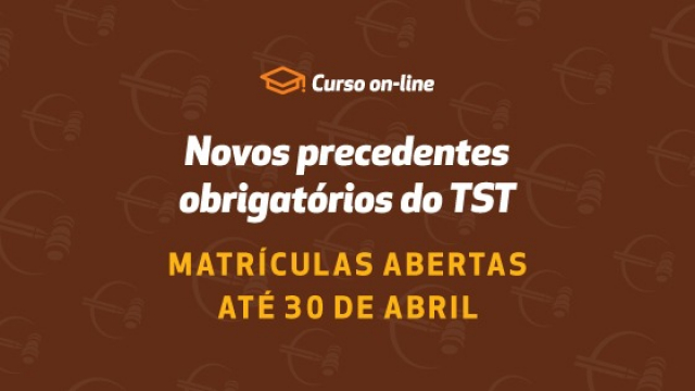Estão abertas, até o dia 30 de abril, as inscrições para o curso online “Novos Precedentes Obrigatórios do TST”, desenvolvido pela Escola Nacional Associativa dos Magistrados da Justiça do Trabalho (Enamatra).