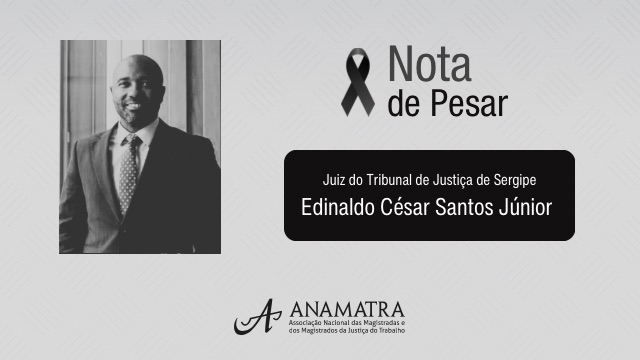 A Associação Nacional das Magistradas e dos Magistrados da Justiça do Trabalho (Anamatra) expressa o seu mais profundo pesar pelo falecimento do juiz Edinaldo César Santos Júnior, do Tribunal de Justiça do Estado de Sergipe, se solidarizando com a família e amigos.