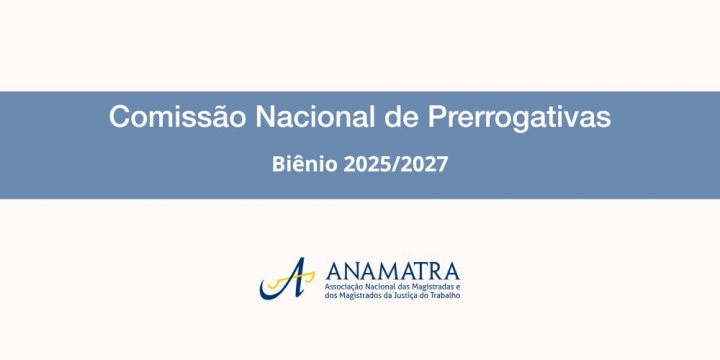 A Associação Nacional das Magistradas e dos Magistrados da Justiça do Trabalho (Anamatra), constituiu, pela portaria nº 13/2025, a Comissão Nacional de Prerrogativas para o biênio 2025/2027, responsável por auxiliar a diretora de Prerrogativas e Assuntos Jurídicos nas questões relativas às garantias, direitos e prerrogativas da Magistratura, nos casos de maior interesse ou complexidade.