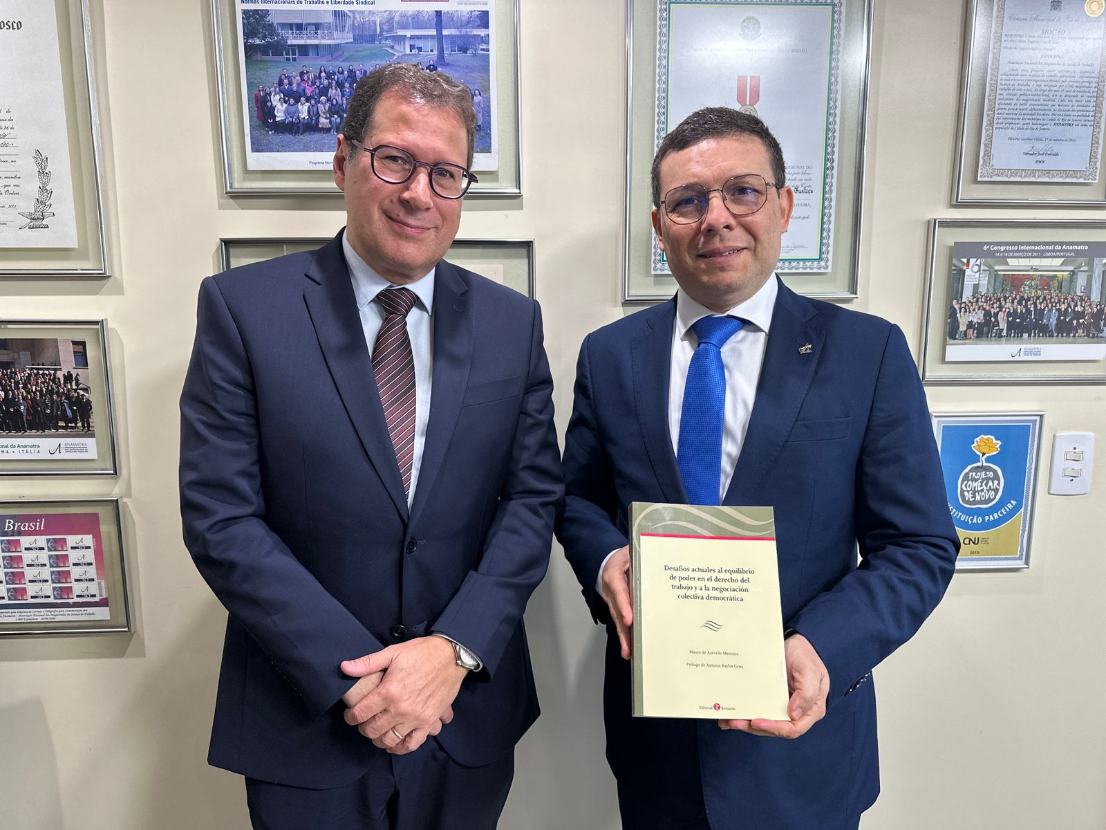 Ao final do encontro, o presidente Valter Pugliesi foi presenteado com o livro ‘Desafíos actuales al equilíbrio de poder em el derecho del Trabajo y a la negociación colectiva democrática’, de autoria de Mauro Menezes. A obra representa o trabalho de conclusão do doutorado de Menezes, concluído na Espanha.