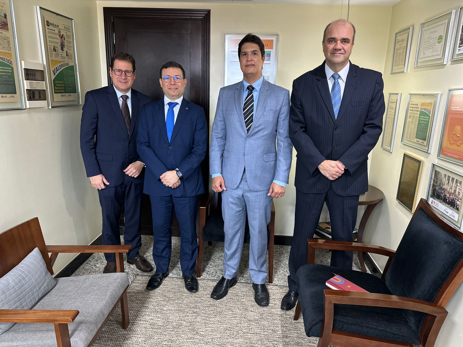 O presidente da Associação Nacional das Magistradas e dos Magistrados da Justiça do Trabalho (Anamatra), Valter Pugliesi, reuniu-se, nesta terça (22/7), com representantes do Escritório de Advocacia Mauro Menezes, na sede da Associação, em Brasília (DF). Além do advogado Mauro Menezes, estiveram presentes os sócios do Escritório Gustavo Teixeira Ramos e Ronaldo Fleury.