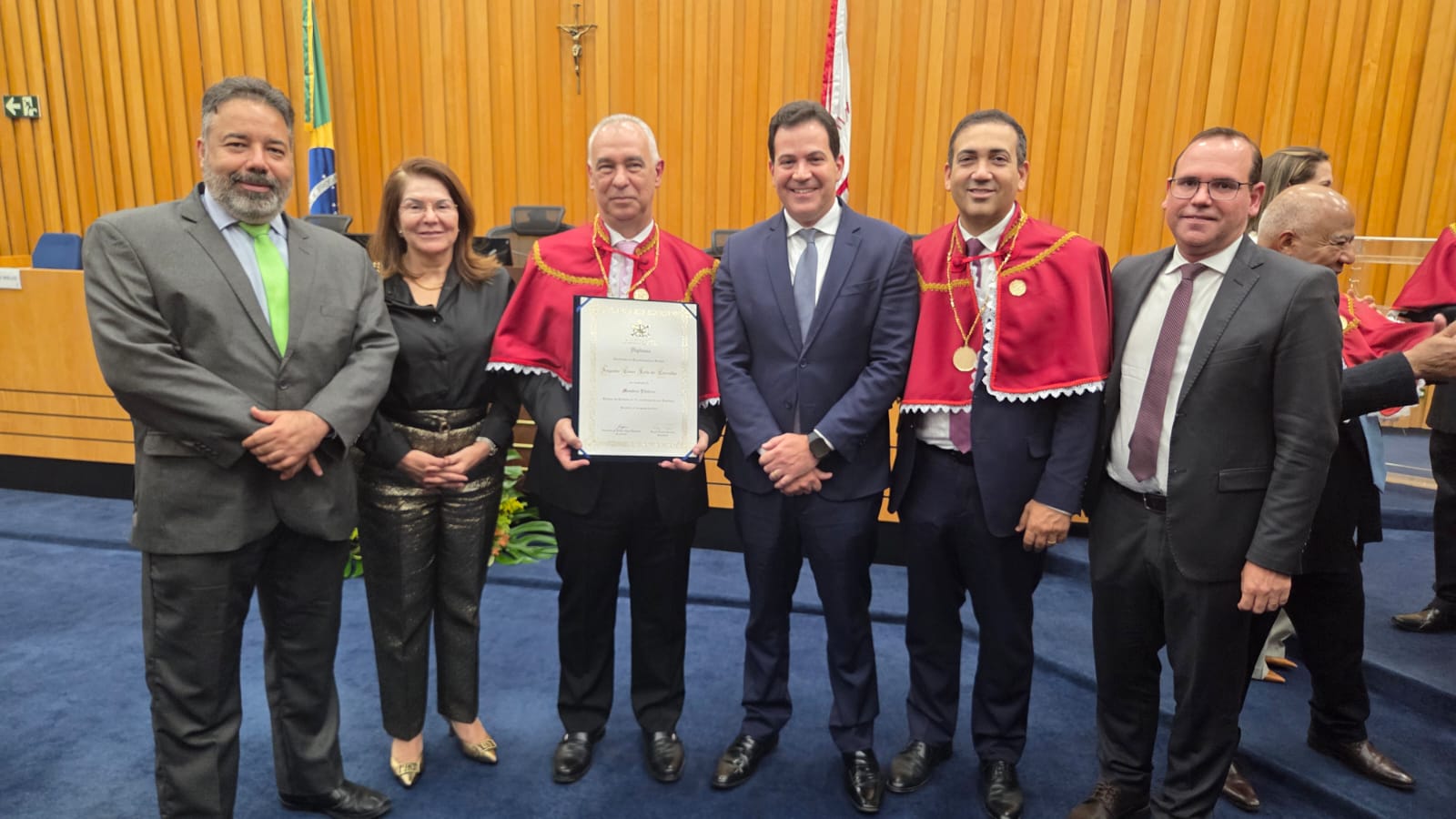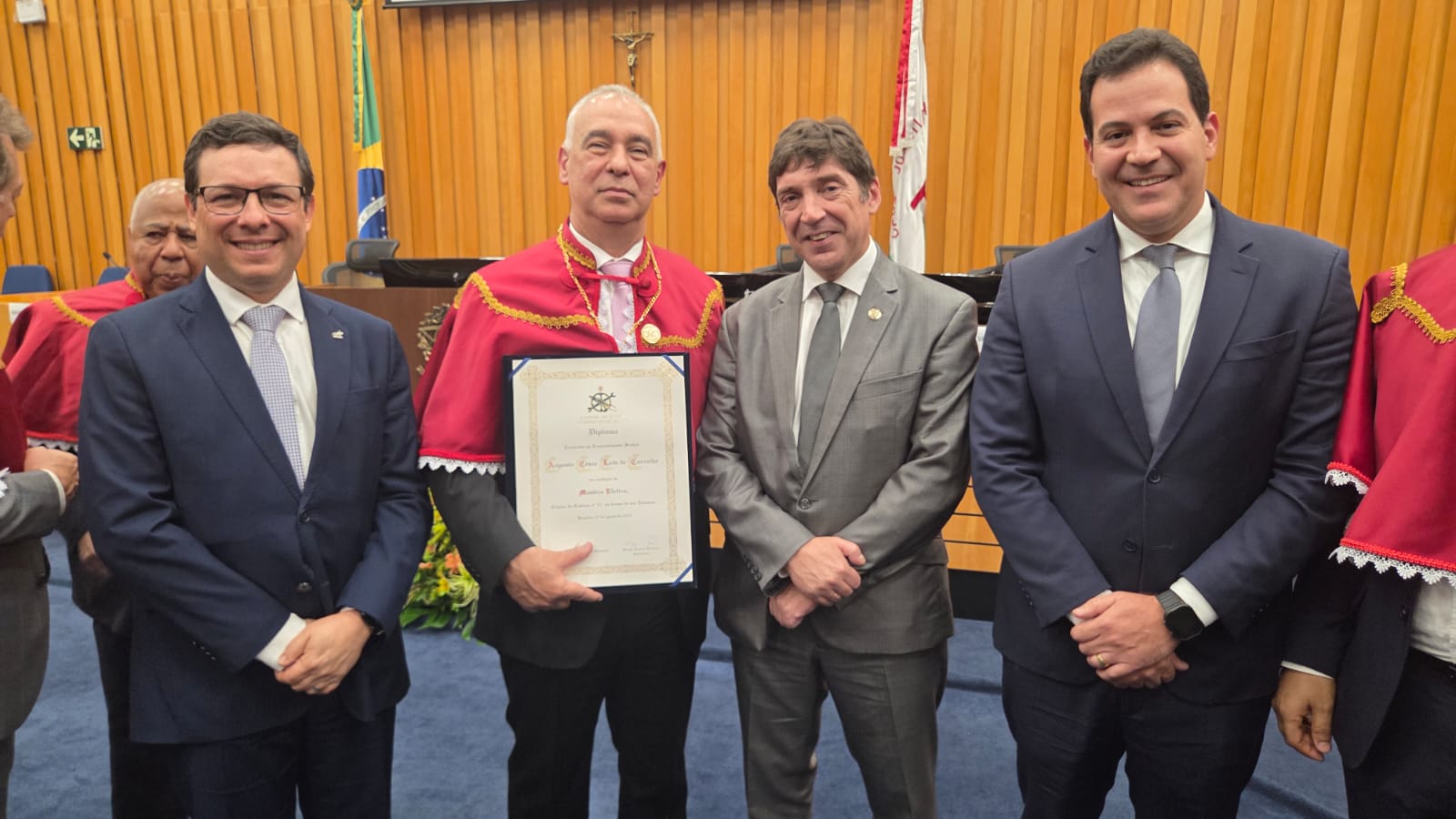 O presidente da Associação Nacional das Magistradas e dos Magistrados da Justiça do Trabalho (Anamatra), Valter Pugliesi, e o diretor de Assuntos Legislativos, Leonardo Jorge, prestigiaram, nesta quarta (27/8), a solenidade de posse do ministro do Tribunal Superior do Trabalho (TST) Augusto César Leite de Carvalho na Academia Brasileira de Direito do Trabalho (ABDT). O ministro passa a ocupar a cadeira nº 17 da ABDT. A eleição ocorreu no dia 13 de maio de 2025.
