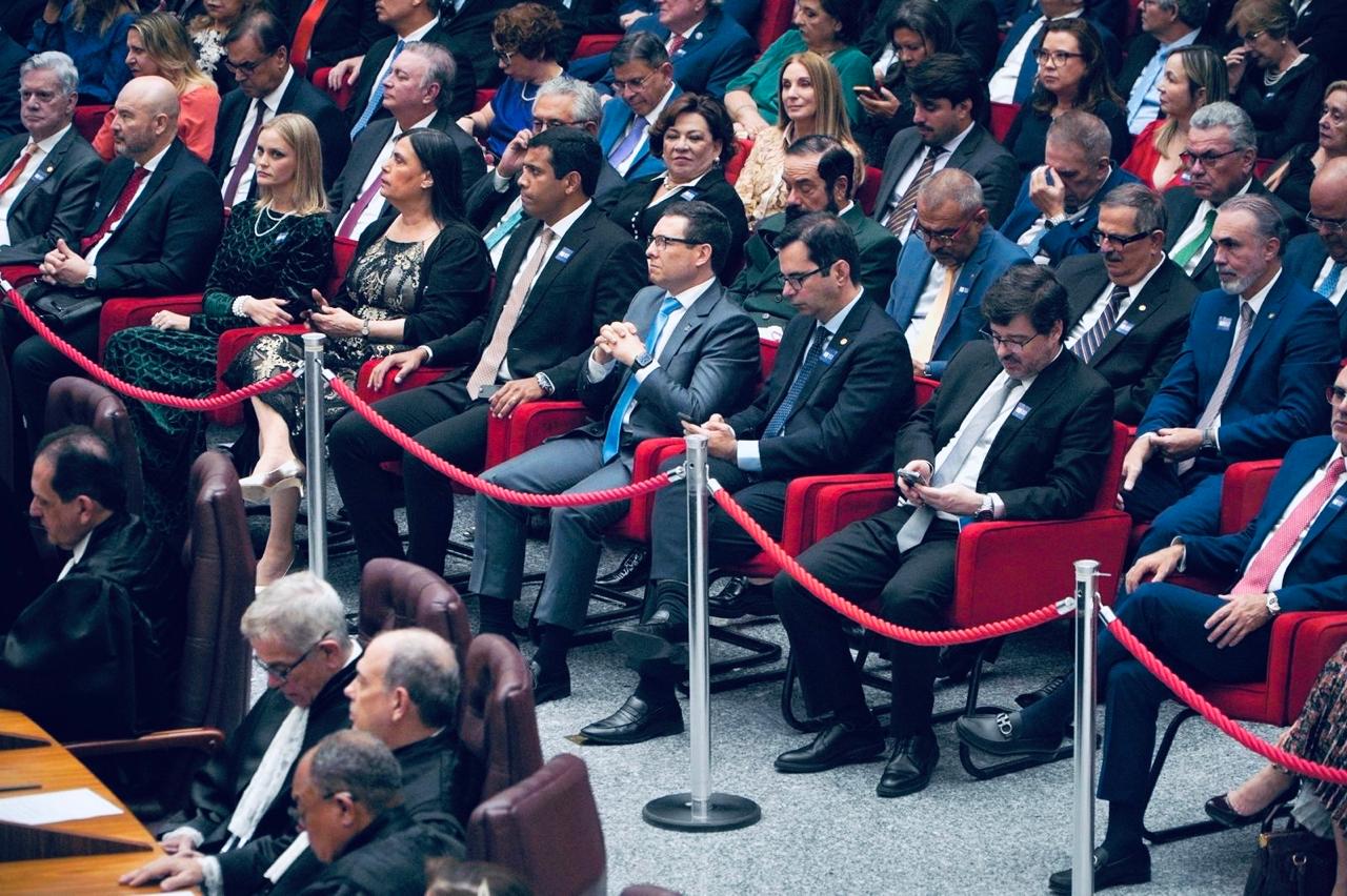 Além do ministro Herman Benjamin, compuseram a mesa da sessão solene o vice-presidente da República, Geraldo Alckmin; o presidente do Senado Federal, Davi Alcolumbre; o presidente da Câmara dos Deputados, Hugo Motta; o vice-presidente do Supremo Tribunal Federal, ministro Edson Fachin; a subprocuradora-geral da República, Luiza Cristina Fonseca Frischeisen; e o presidente da Ordem dos Advogados do Brasil, Beto Simonetti.